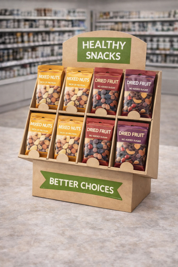 Create compact, eye-catching display stands tailored to your products. Choose from a wide range of materials, prints, and finishes to build a display that truly stands out at the counter.