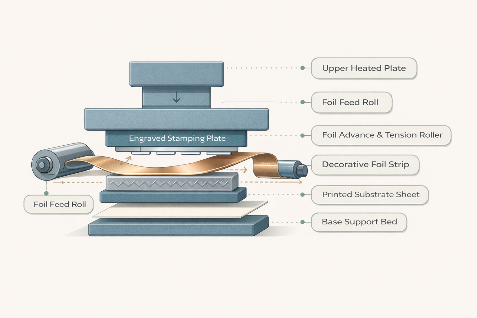 Once applied, the excess foil is removed, leaving behind a precisely defined metallic or decorative finish. The result is a durable, visually striking enhancement that integrates seamlessly with printed graphics, delivering a premium look and feel that enhances the overall packaging experience.