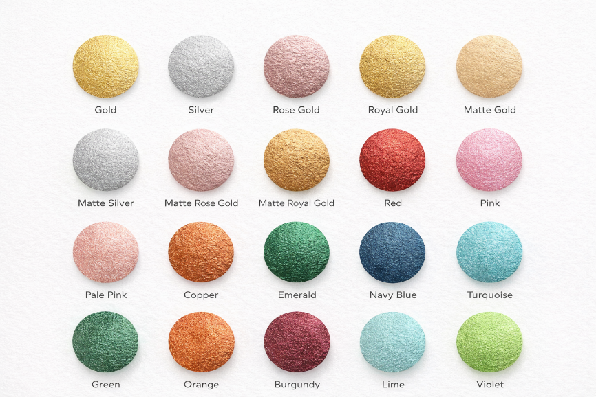 - Available in a wide range of metallic, matte, and specialty foil colors