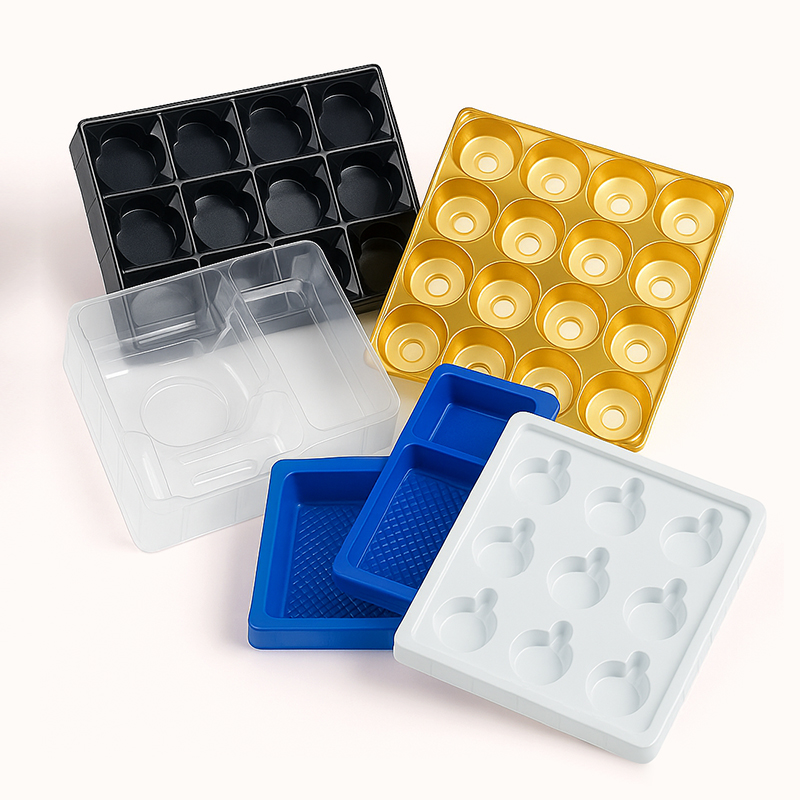 Custom-molded plastic trays that keep items neatly organized. Perfect for food, confectionery, and retail products requiring clear visibility and precision fit.