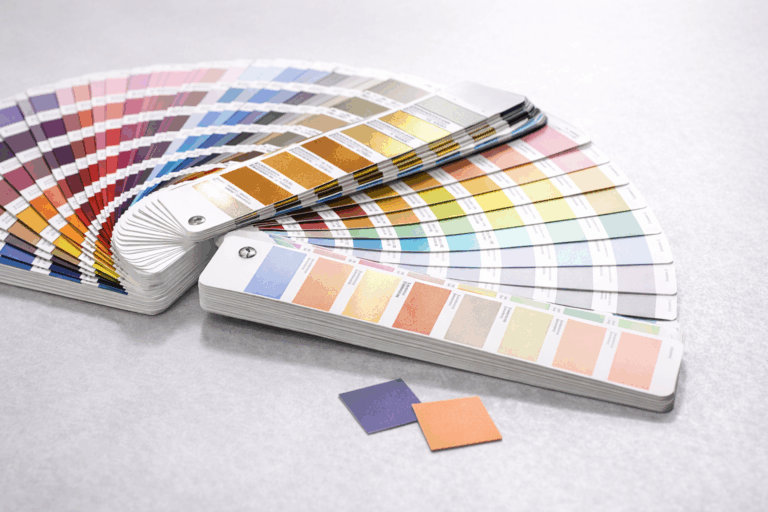 Pantone provides physical color guides that show how colors appear in print. These guides help designers and printers choose colors confidently.