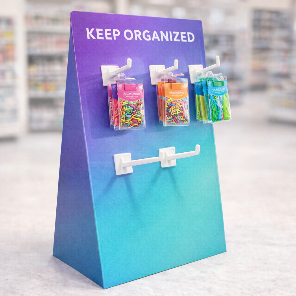 Peg hook display stands combine structured layouts with vertical merchandising to keep products easy to browse and hard to miss.