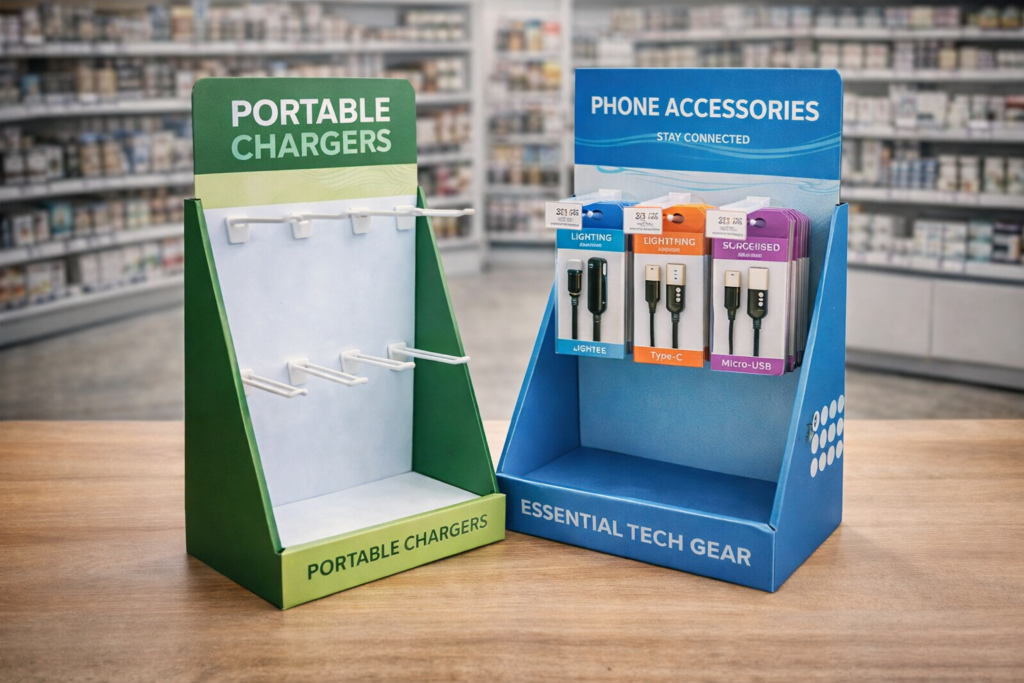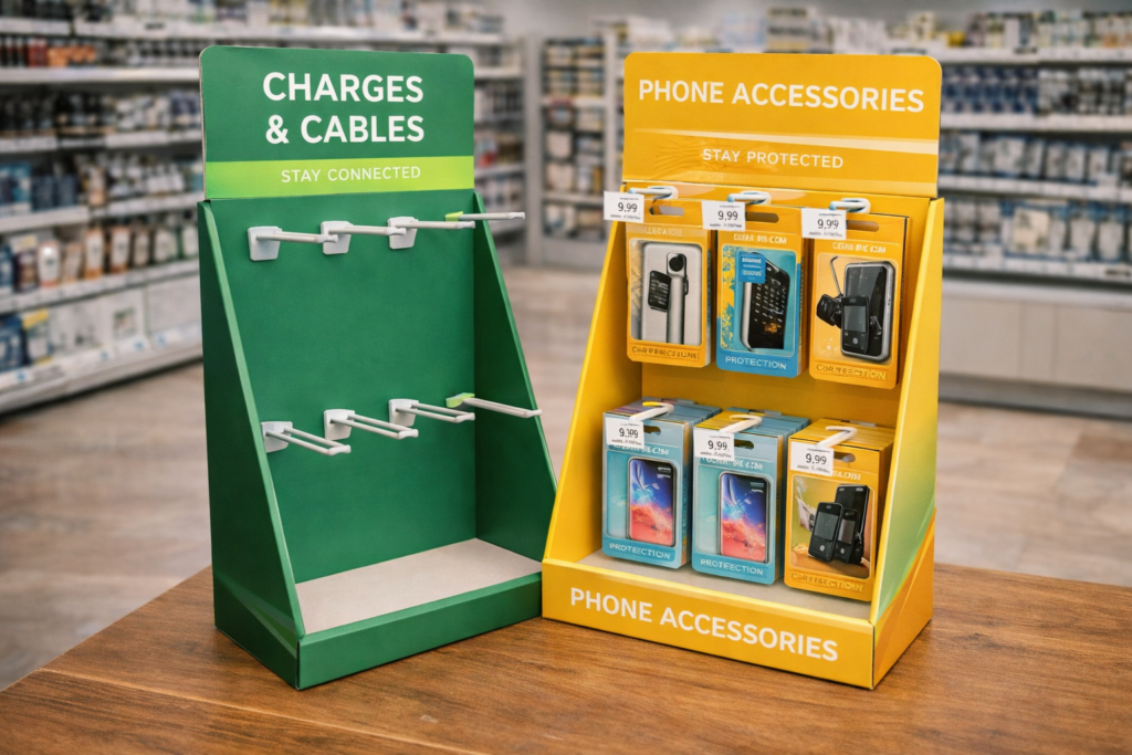 Designed for accessories and packaged goods, peg hook display stands deliver strong visibility without occupying valuable shelf space.