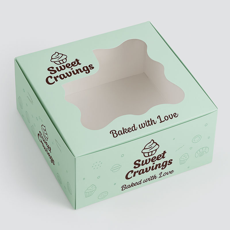 Bakery Boxes with Window are specially designed to highlight your sweet creations while keeping them safe and fresh. With a clear window display, these boxes allow your cakes, cupcakes, pastries, and baked goods to shine through, offering customers a tempting preview. Made from durable and food-safe paperboard, these boxes combine functionality with an elegant presentation — ideal for bakeries, cafés, events, and gifting.