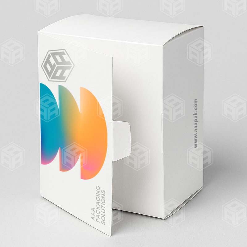 A versatile tuck-end box featuring a hinged, book-like front flap. Perfect for creating an engaging unboxing experience, this design allows you to conceal extra details inside or add a window cutout for a unique, book-inspired presentation
