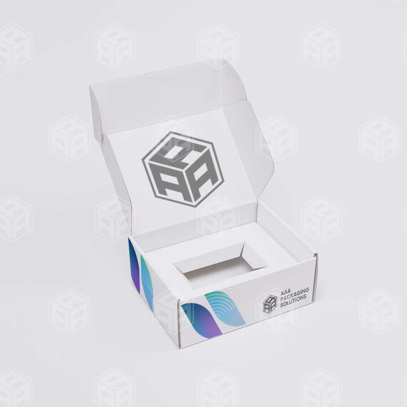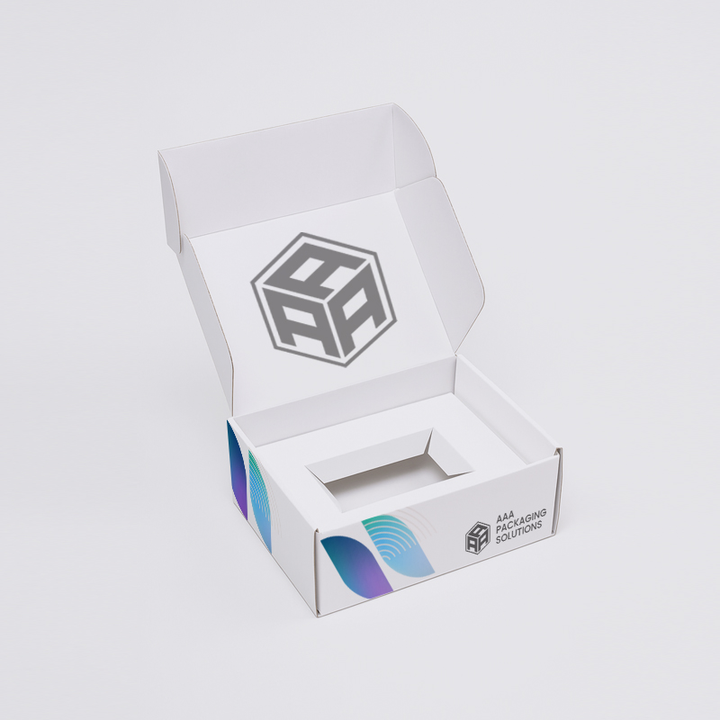 LoginMailer box supplied with a custom die‑cut insert that cradles products, eliminating movement and enhancing presentation.