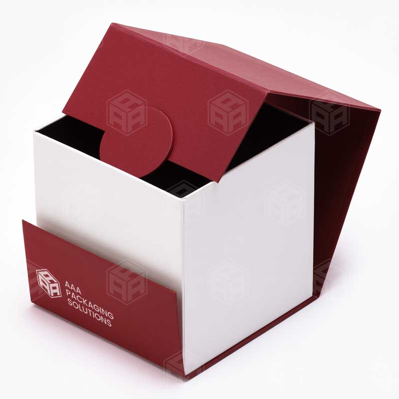 Flat-packed magnetic box ideal for retail or gifting. Durable yet space-saving collapsible construction.