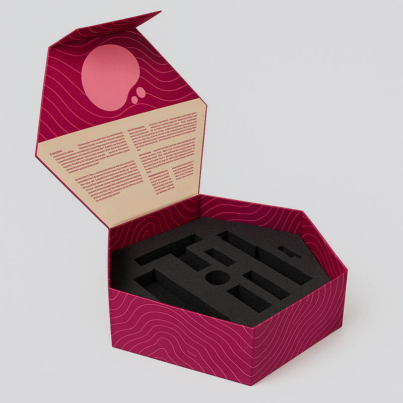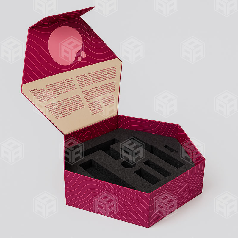 LoginA custom printed hexagon rigid box designed to stand out on any shelf. Ideal for creative branding and packaging that requires a unique geometric form.