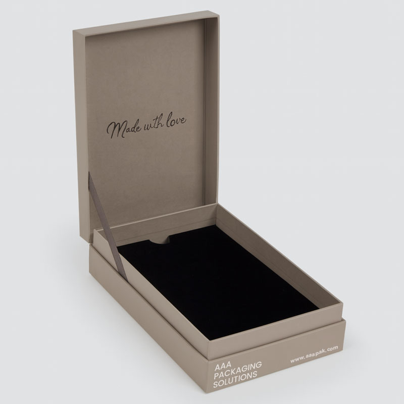 LoginStylish hinged rigid packaging for jewelry items, featuring a secure fit and clean finishing.