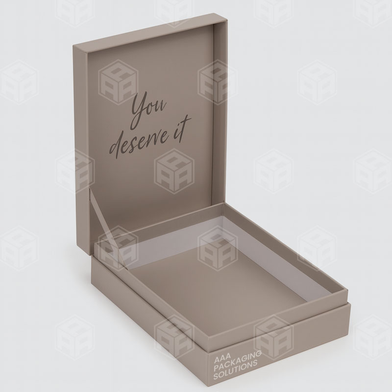 Designed with an attached lid, this structure offers controlled opening, consistent alignment, and reliable closure while maintaining the solid feel of rigid packaging. Built from high-density chipboard, these boxes provide excellent protection, refined aesthetics, and a polished unboxing experience.