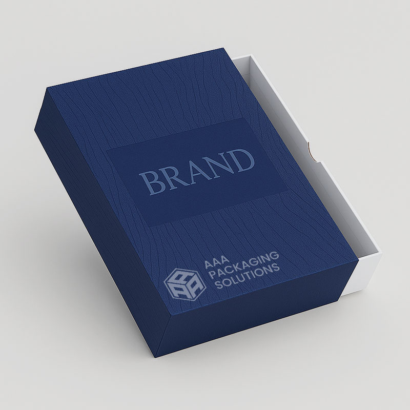 Built with a rigid outer sleeve and a precisely fitted inner tray, this box style ensures strength, stability, and controlled presentation. Crafted from high-density chipboard, it delivers excellent protection while adding a modern, premium feel, ideal for luxury products, gift sets, and high-value packaging.