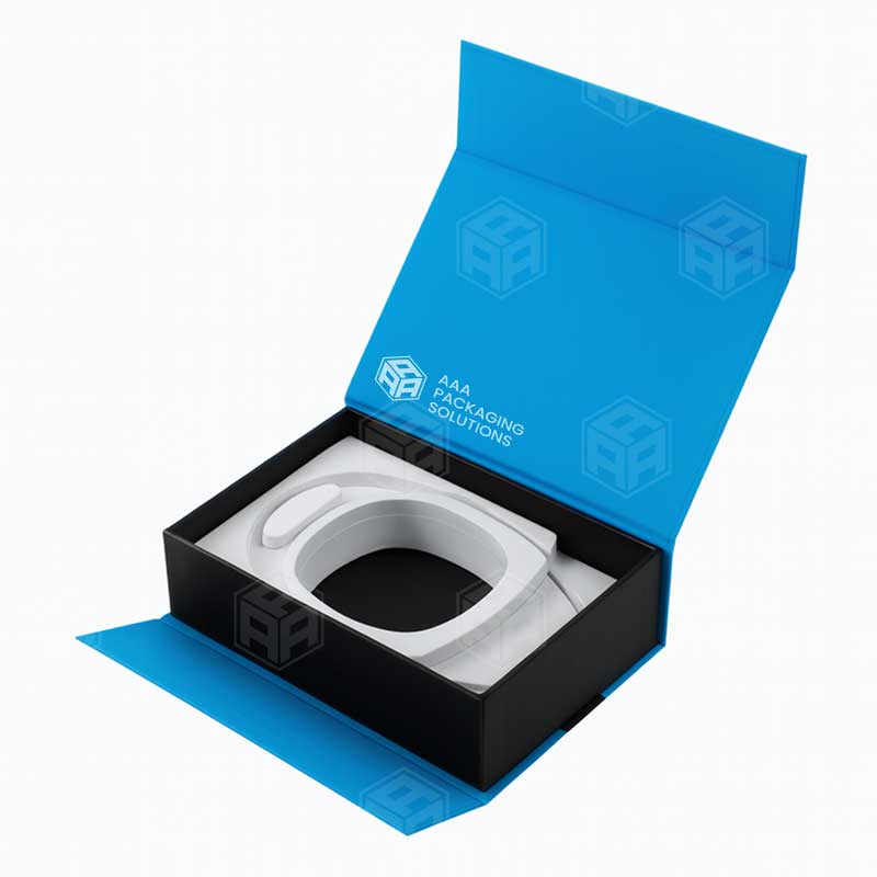 Perfect for electronic accessories, this custom rigid earphone box combines durability with a premium unboxing experience. The magnetic closure and hinged design ensure products stay secure while adding a sleek, high-end touch to your packaging.
