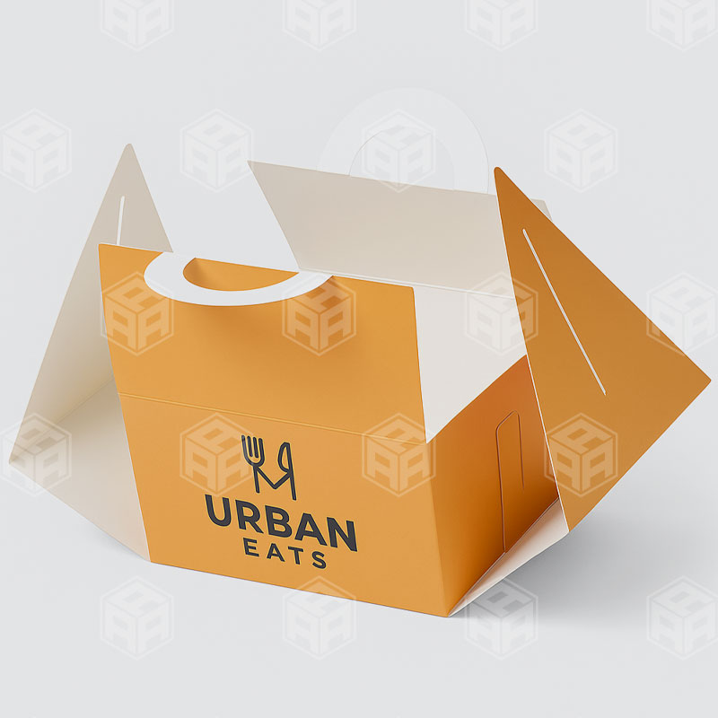 Overlap Lock Carrier Take-Out Boxes are designed to provide both durability and convenience for food packaging. Featuring a secure overlap lock and sturdy built-in handle, these boxes are perfect for carrying meals, baked goods, or bulkier food items with ease. Their strong structure prevents collapsing or tearing, making them ideal for both lightweight and heavier take-out items. With customizable printing options, they also double as an excellent branding opportunity for your business.