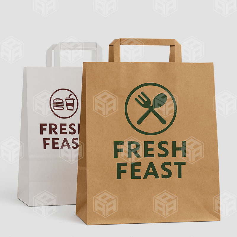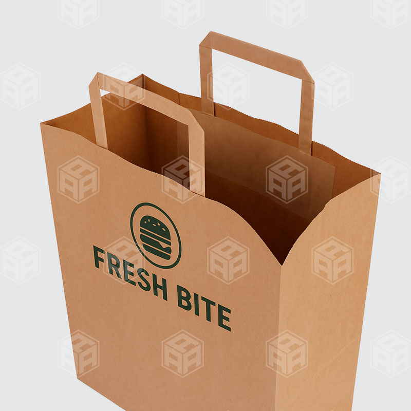 Paper Food Bags with Flat Handles are the ideal eco-friendly solution for takeout and bakery packaging. Designed with durability and functionality in mind, these bags provide a comfortable carrying experience while keeping food items safe and fresh. Perfect for restaurants, bakeries, cafés, and catering businesses, they offer both practicality and a polished presentation. With customizable branding options, you can elevate your customer experience while promoting your business in style.