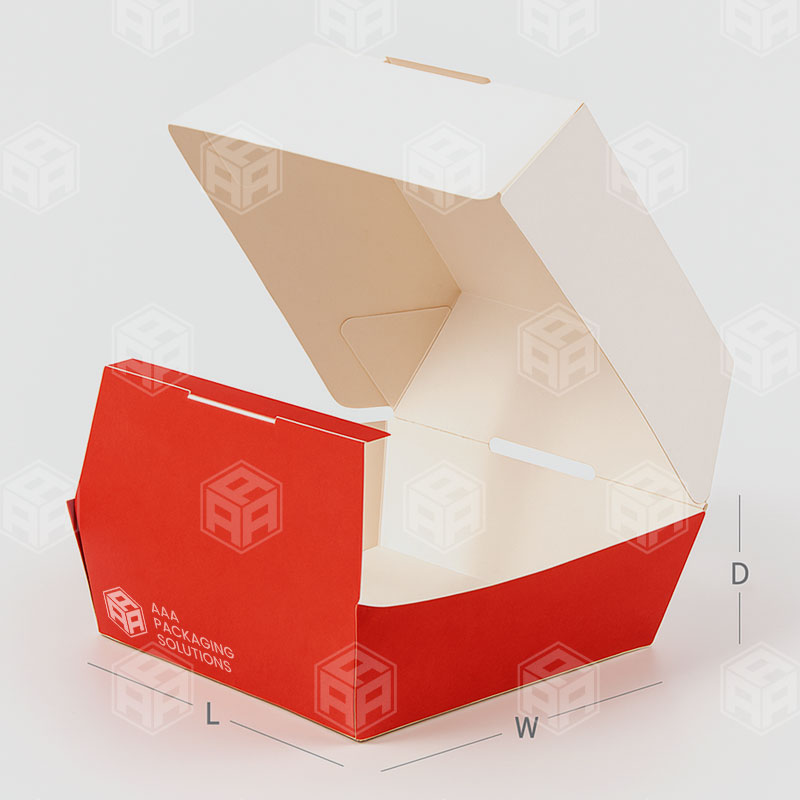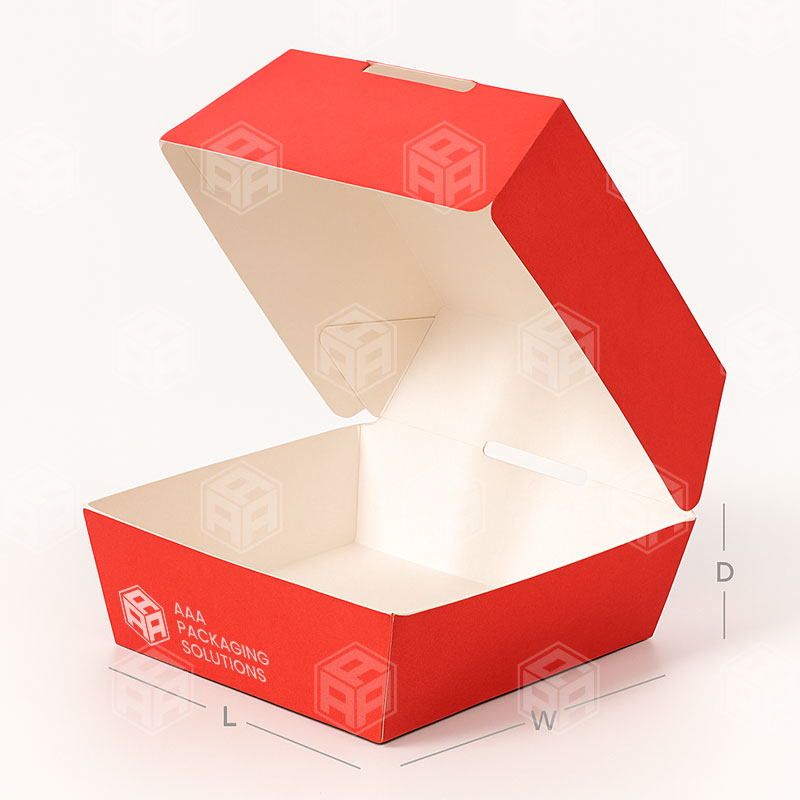LoginServe your burgers with style and reliability using our Printed Burger Boxes. Designed with a strong clamshell structure, these boxes lock securely to keep burgers fresh, warm, and intact during takeout or delivery. With customizable prints, they also double as a branding tool, helping your restaurant stand out while ensuring customers enjoy their meals mess-free.