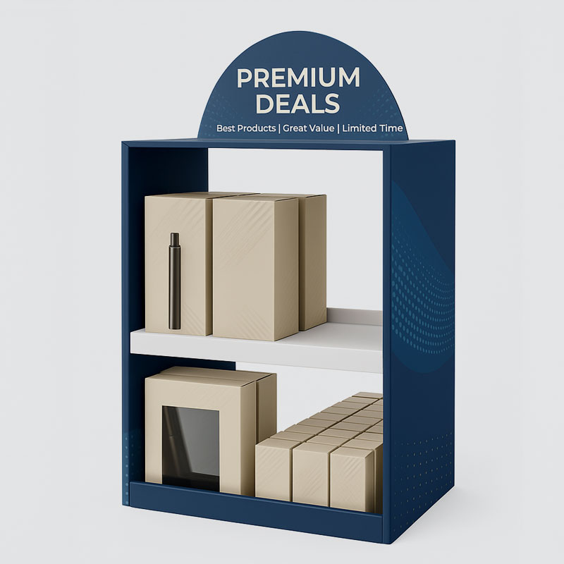 Showcase your products in style with our custom retail counter display stand. Designed to highlight merchandise at eye level, this unit is perfect for driving impulse purchases and maximizing brand visibility. With a sturdy build and customizable branding, it’s an ideal choice for retail environments, promotional events, and seasonal campaigns.