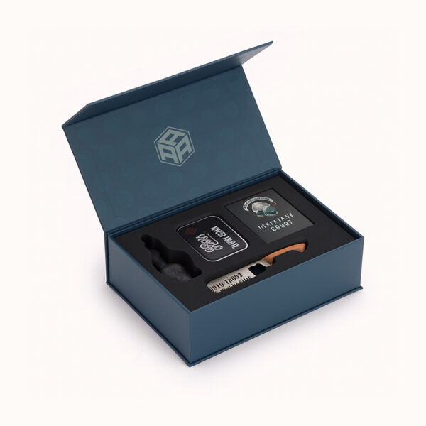 Premium leather and wooden material options crafted to deliver a distinctive, high-end rigid box finish.