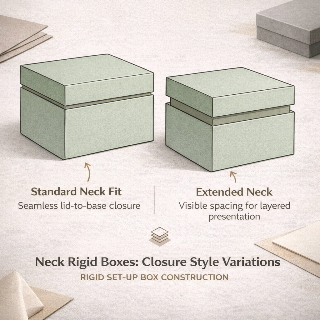 For brands seeking a more defined and premium build, shoulder & neck rigid boxes offer enhanced stability and visual depth. The exposed neck detail adds sophistication without overpowering the design.