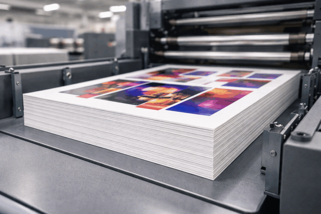 Printed sheets can be cut, folded, laminated, or finished immediately.